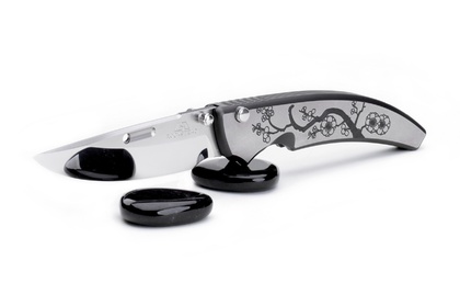 The Japanese apricot picture was engraved to the scale made of titanium. The clip is in the same package. You can install the clip by removing the cover parts. This is a knife for the gentleman with a Japanese image.