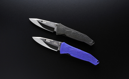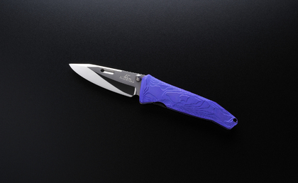 This handle material is titanium. And, this blade material is ZDP189. Also, this blade shape is convex grind (HONZUKURI).