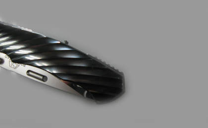 This blade outline is image the "HIGONOKAMI" which represent knife in Japan. And, the blade shape is convex (HONUKURI. It is very easy to use and cuts well. This blade material is ZDP189 and the handle material is titanium with DLC. This greatest feature of this knife is its movable clip sistem, called "concealed clip system". We have originally produced the concealed clip system to eliminates the uncomfortable feeling of the "clip feel " when gripping the handle.However, it turns out that a part of the mechanism of this "concealed clip system" conficts with US patent No. 8112894 and 8783141. We have been licensed to use these US patents after negotiations with Mr. Joseph Caswell, the US patent owner.