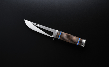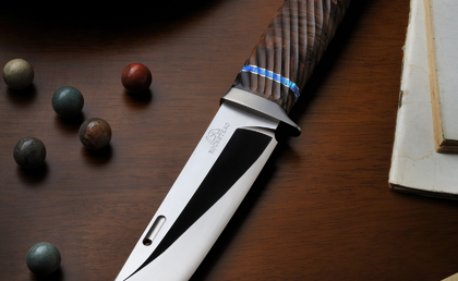 This knife is a flagship of the sheath knife of ROCKSTEAD. The shape of our blade is made from a consecutive convex surface. This is a technology that doesn't permit other follows, and we have confidence in this surface. When you strongly press this knife against the telephone book, it will cut like cutting butter. Please confirm our HONZUKURI blades that evolved. ZDP189 is a powder stainless steel material developed for cutlery. It is a product of the nano tech. However, it is an unsuitable knife to the beating cut. This knife is narrow tang. This knife begins selling in 2013. We are accepting your reservation.