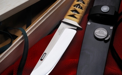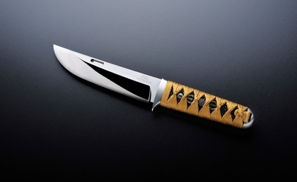 This knife is a flagship of the sheath knife of ROCKSTEAD. The shape of our blade is made from a consecutive convex surface. This is a technology that doesn't permit other follows, and we have confidence in this surface. When you strongly press this knife against the telephone book, it will cut like cutting butter. Please confirm our HONZUKURI blades that evolved. The handle of UN can be detached. We are developing new practicable handle attachable to this knife. ZDP189 is a powder stainless steel material developed for cutlery. It is a product of the nano tech. Sharpness did not decrease so much to the blade of ZDP189 after having cut hard Manila rope 780 times. However, it is an unsuitable knife to the beating cut. This knife is three-quater tang. Please choose the color of the silk cord of the handle freely from among 4 colors. (KINCYA,UGUISU,TETSUKON and AZUKI)